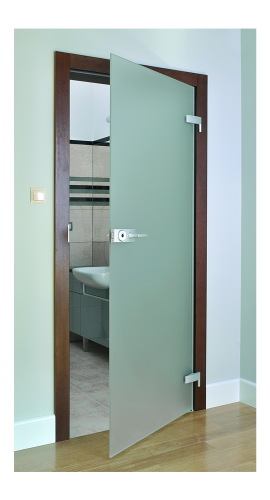Drzwi całkoszklane wykonanie są ze szkła hartowanego.