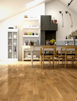 FertigParkiet to podłoga dwuwarstwowa z prawdziwego drewna, uniwersalna i odporna na zmiany mody, do zastosowania w mieszkaniach i biurach..
