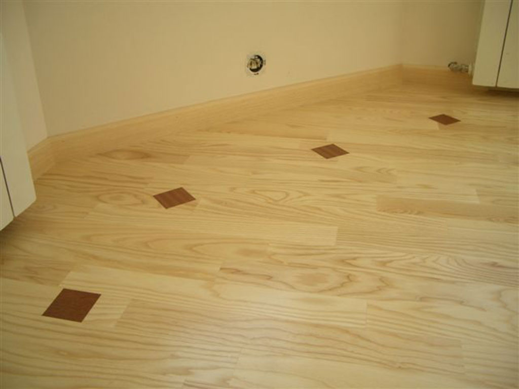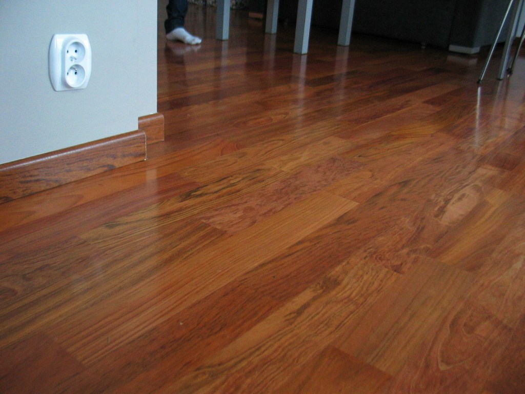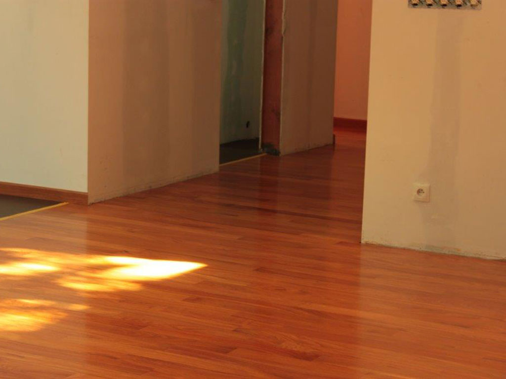 Deski o wymiarze 15x90x400-1200 mm przyklejone do podłogi i lakierowane lakierem 2-składnikowym – pół mat