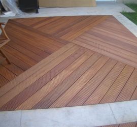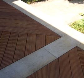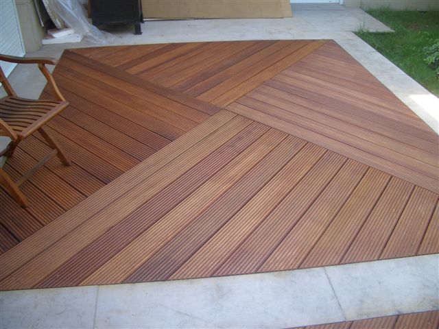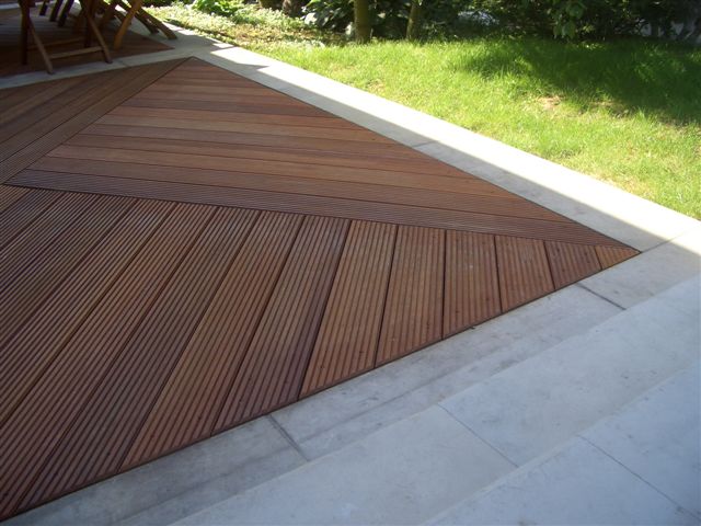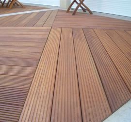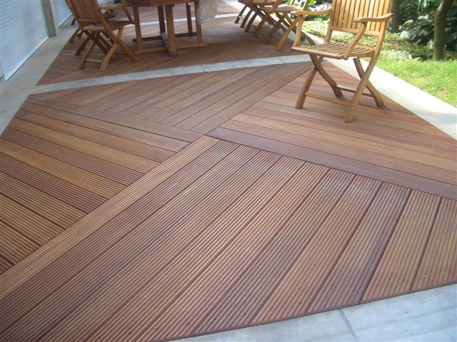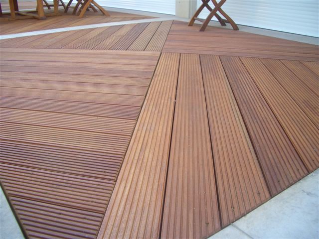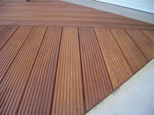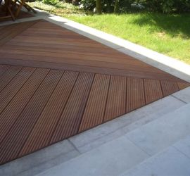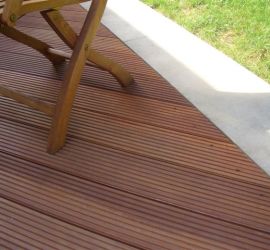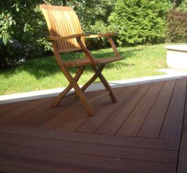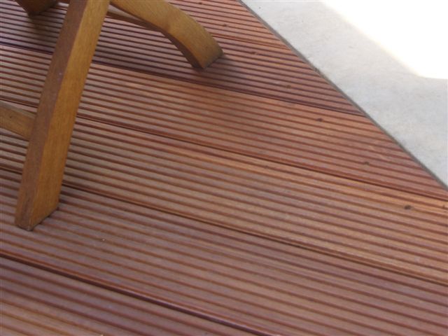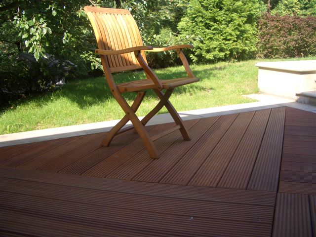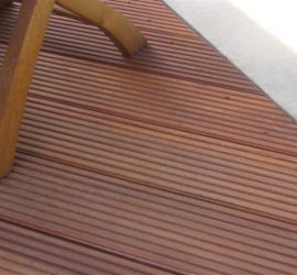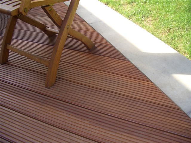 Taras z drewna egzotycznego Bangkirai. Deska tarasowa o przekroju 25×145 mm olejowana – olej bezbarwny.